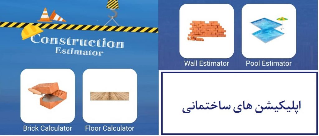 Cunstruction Estimator: این اپلیکیشن که با نام مشابه وجود دارد محاسبات مربوط به تعداد آجر یا بلوک مورد نیاز، رنگ مورد نیاز، کفپوش مورد نیاز، برآورد دیوار، استخر و کنترل دما را انجام می دهد.
