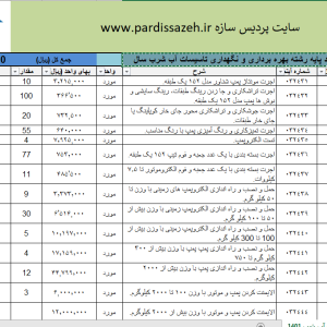 فهرست بهای واحد پایه رشته بهره برداری و نگهداری تاسیسات آب شرب سال 1401