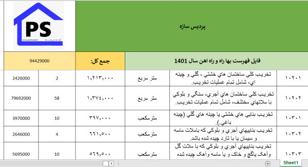 به منظور برآورد هزینه و دستمزد اجرای هرکار ، فهرستی تهیه شده که شامل شماره ، شرح ، واحد ، بهای واحد ، مقدار و مبلغ ردیف ها می باشد.